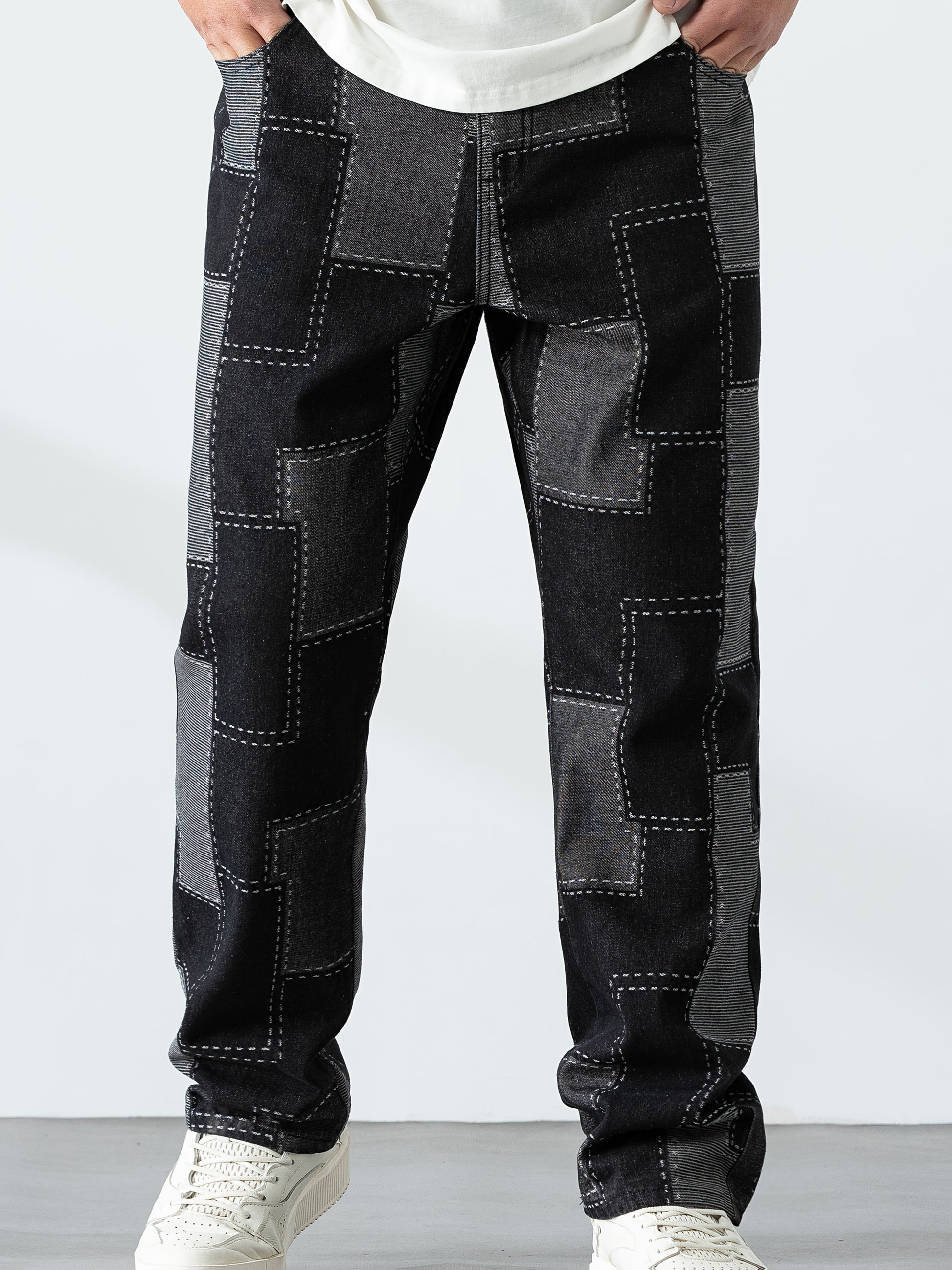 Men's Casual Checkered Straight-Leg Loose Jeans